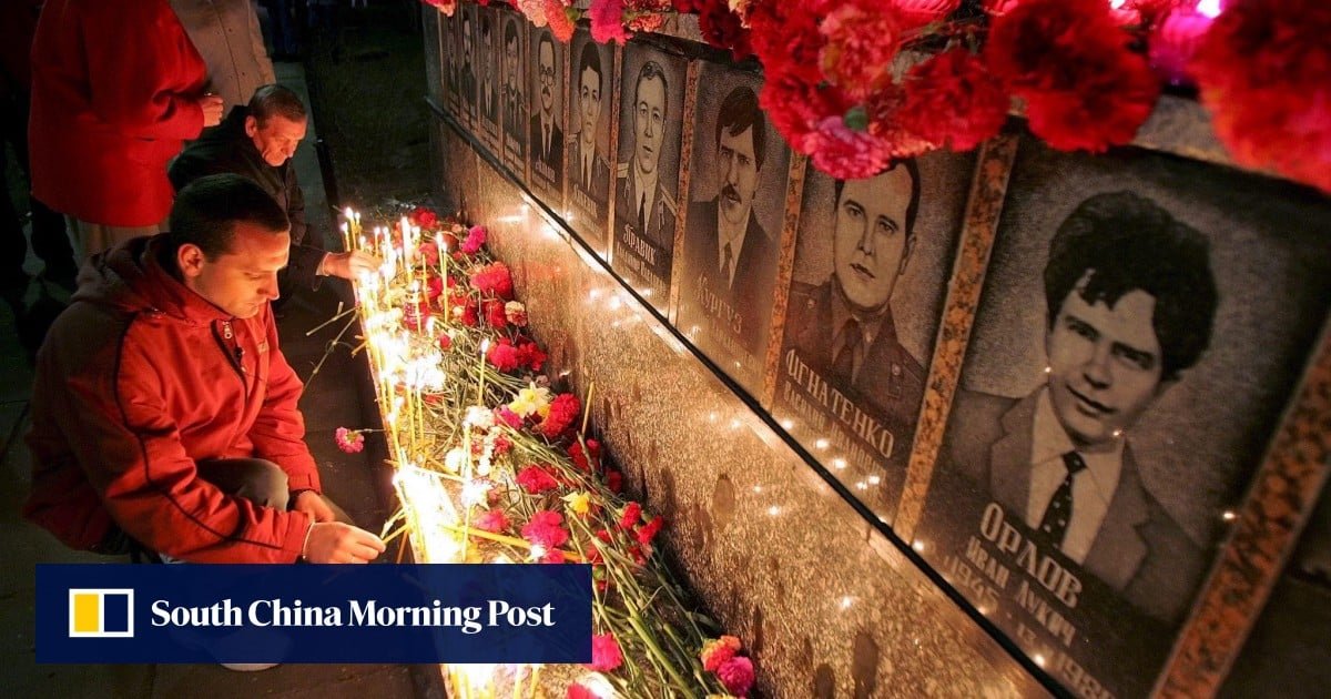 People flocked to the central square of Slavutych early Sunday, placing candles on a large radiation hazard sign laid down as a midnight memorial began for those killed in the Chernobyl disaster 40 years ago and the thousands who risked fatal radiation exposure to control its aftermath.